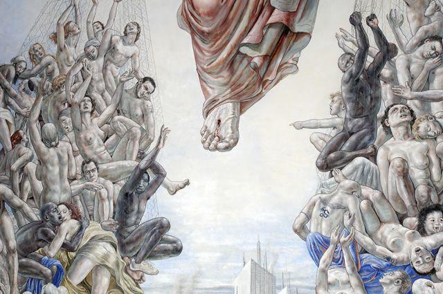 Rozsiahla nástenná maľba stále pokrýva prednú časť fasády katedrálneho chrámu diecézy Terni-Narni-Amelia. Zobrazuje Ježiša, vynášajúceho do neba siete, plné nahých a polonahých homosexuálov, transsexuálov, prostitútov, prostitútky, drogových dílerov, navzájom poprepletaných v erotických pozíciach.