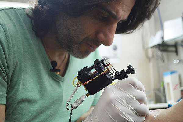 Z historickej perspektívy si kresťanskí tetovací umelci vytvorili vlastné farby a používali pečiatky pri aplikácii obrázkov na pokožku, než po nich prešli tetovacími nástrojmi. Zatiaľ čo Wassim nepoužíva starý rodinný recept zo sadzí a vína - používa sterilné atramenty vyrobené špeciálne pre tetovanie - mnohé zo 168 rodinných drevených pečiatok sa dodnes využívajú.