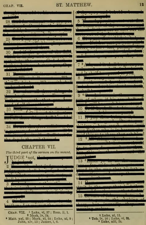 Evanjeliá sa po adekvátnej úprave dajú použiť podľa toho, ako kto potrebuje (z tejto stránky Matúšovho evanjelia zostal po ´úprave´ len začiatok 7. kapitoly so slovami "Nesúďte ...")