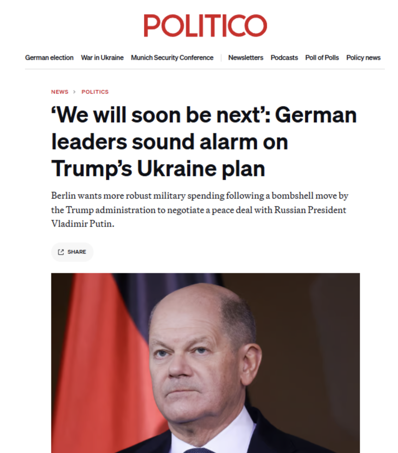 USAID sponzorovaná Politico informuje gloomod irelevantného Olafa Scholza.
