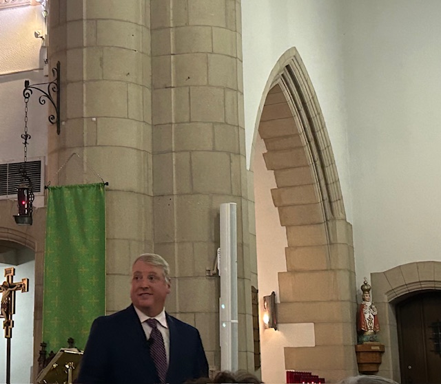 Katolícky zástanca života Mark Houck počas prednášky v katolíckom kostole svätého Andreja apoštola povzbudil zástancov života, aby pokračovali v svedectve o nenarodených deťoch napriek prenasledovaniu, ktorému čelil pred tromi rokmi.