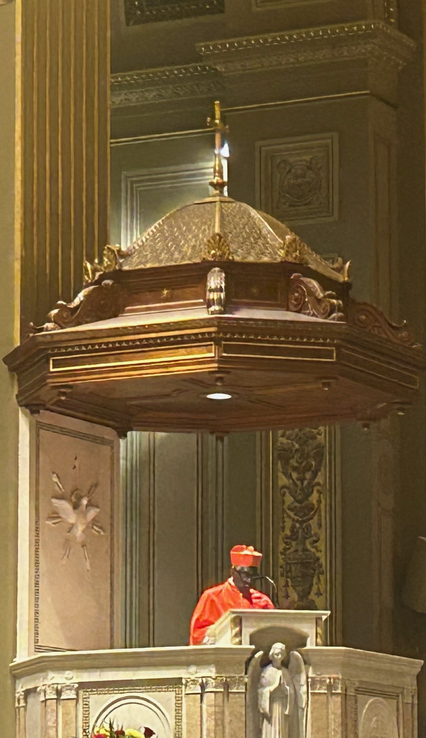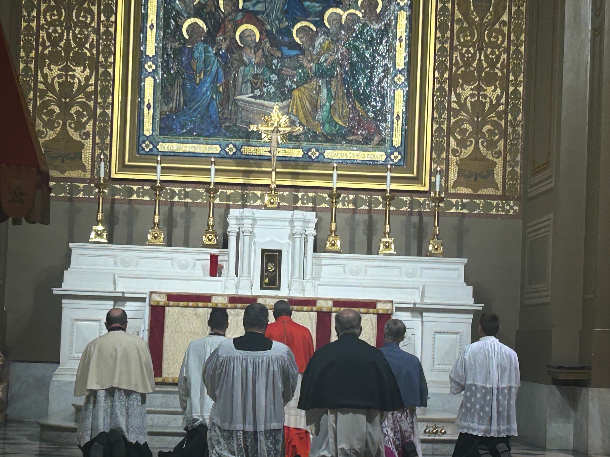 “Cirkev vo svojej starobylej kráse a tradícii ustanovila práva na to, aby sme (nášmu Pánovi) dali tú lásku, tú náklonnosť, tú adoráciu ako Bohu,” povedal. “A my by sme nemali robiť nič menej, ako sláviť (liturgie) takto … (s) krásou, nielen veľké piesne a hymny, kantiká a majestátnosť toho všetkého, ale vedieť, že Ježiš je milovaný.”