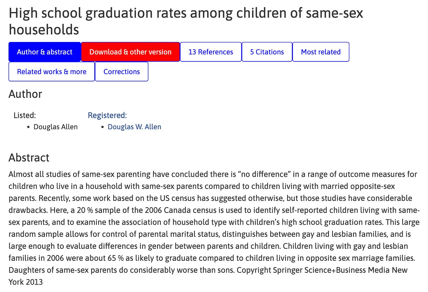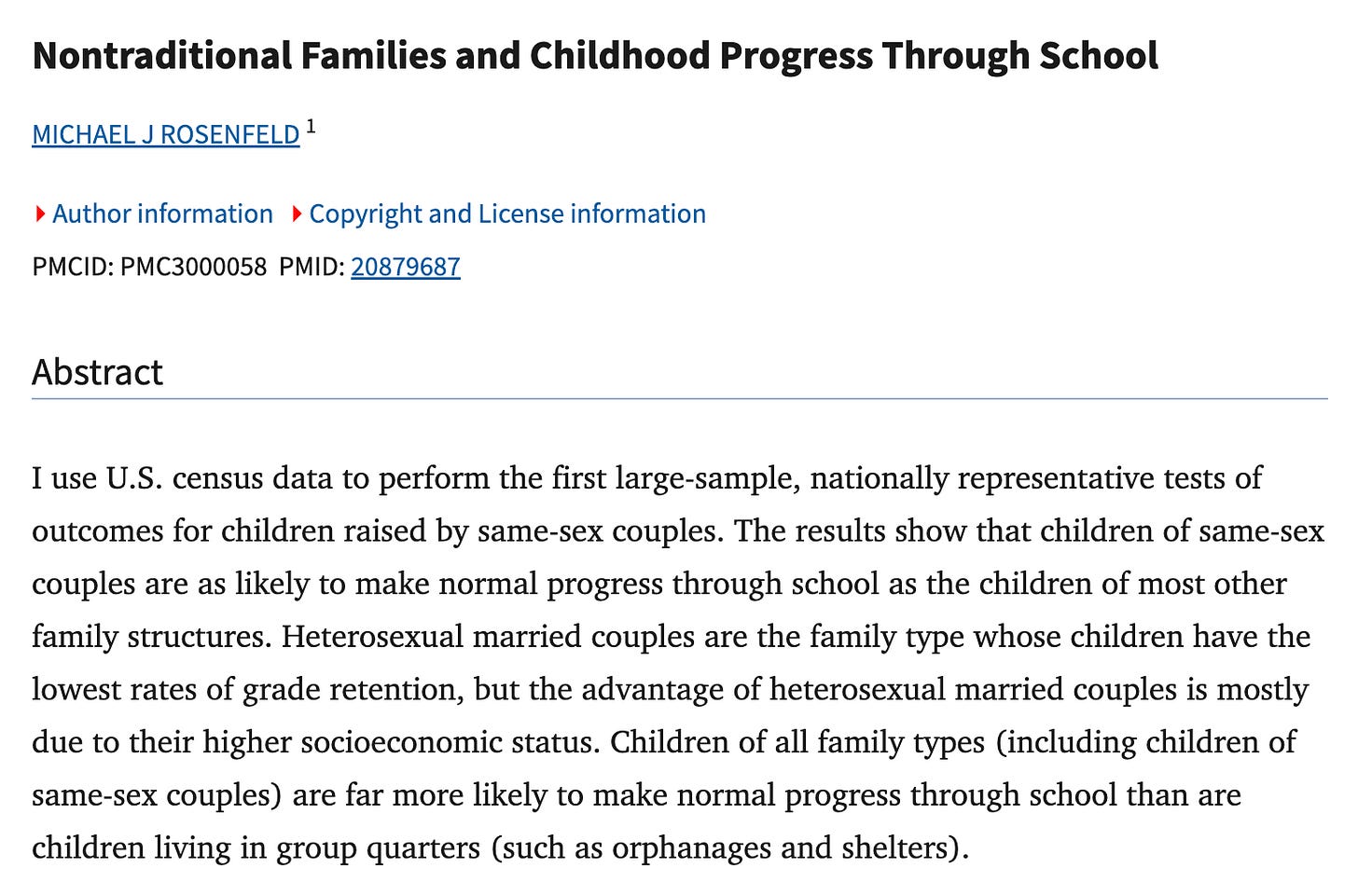 Ak ste už niekedy argumentovali proti manželstvu “rovnakého pohlavia” alebo rodičovstvu “rovnakého pohlavia,” pravdepodobne ste sa stretli s niečím, čo váš oponent považuje za "mic drop": Odkazy na Cornell University’s, v ktorých sa tvrdí, že 75 zo 79 štúdií ukazuje, že deti homosexuálnych alebo lesbických “rodičov” sa nemajú horšie ako ostatné deti.