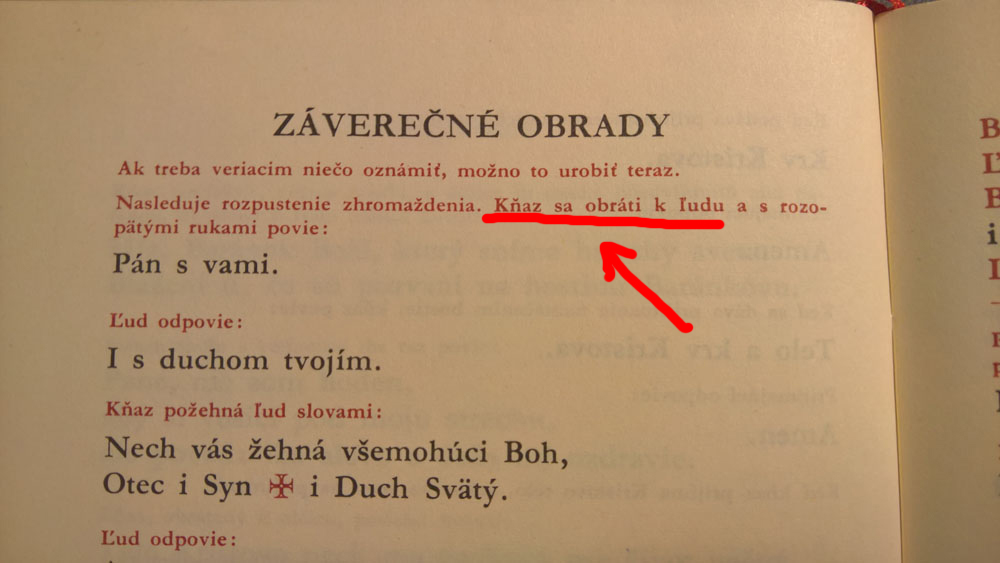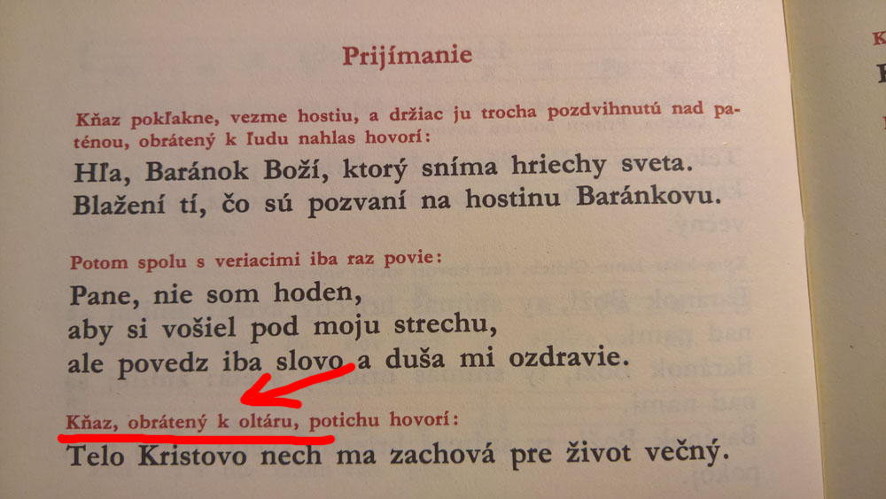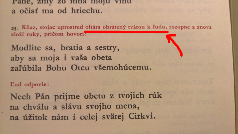 K tomu povzbudzujú aj rubriky Rímskeho misála, ktoré umožňujú a v spomínanom duchu aj predpokladajú, slávenie Nového obradu sv. omše v spoločnom obrátení sa kňaza a ľudu počas liturgie eucharistie smerom na východ.