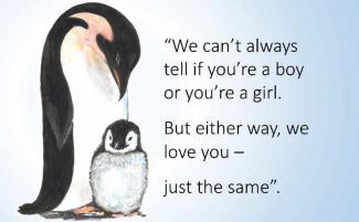 Tieto knihy sú nástrojom GIRE, ktorým sa chcú zamerať na materské školy a jasle. Dali si záležať, aby boli čo najroztomilejšie: obojpohlavným tučniakom dali mená ako Tom a Polly, aby im tak každé dieťa mohlo [priradiť] akékoľvek pohlavie. Máme sa teda na čo tešiť.