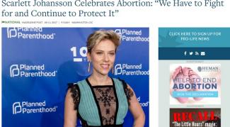 Počas svojho zapáleného prejavu na Pochode Žien za „ženské reprodukčné a zdravotné práva,“ Johanssonová pochválila potratovú spoločnosť Planned Parenthood a dodala, že: „každá jedna z jej priateliek má príbeh spojený s Planned Parenthood.“