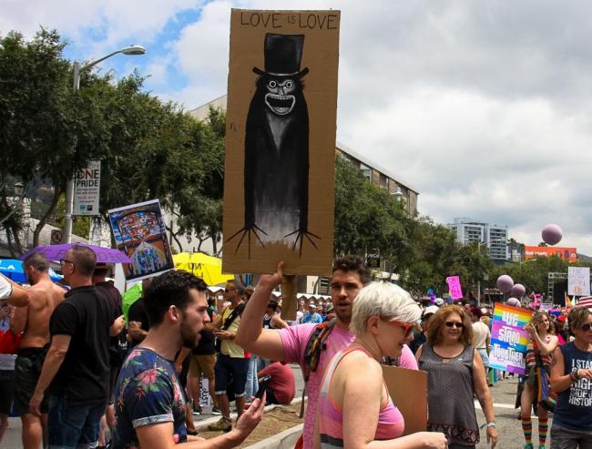 Príliš som sa do toho začítal? Nemyslím si. Prečo inak by homosexuálne „hnutie“ prijalo niečo tak odpudzujúce, aby ich reprezentovalo? Babadook sa tento rok objavil na akciách "Gay Pride", ironické porovnávanie slov a obrazu na znakoch, ako je tento, ktorý sa zrejme stratil v dave: