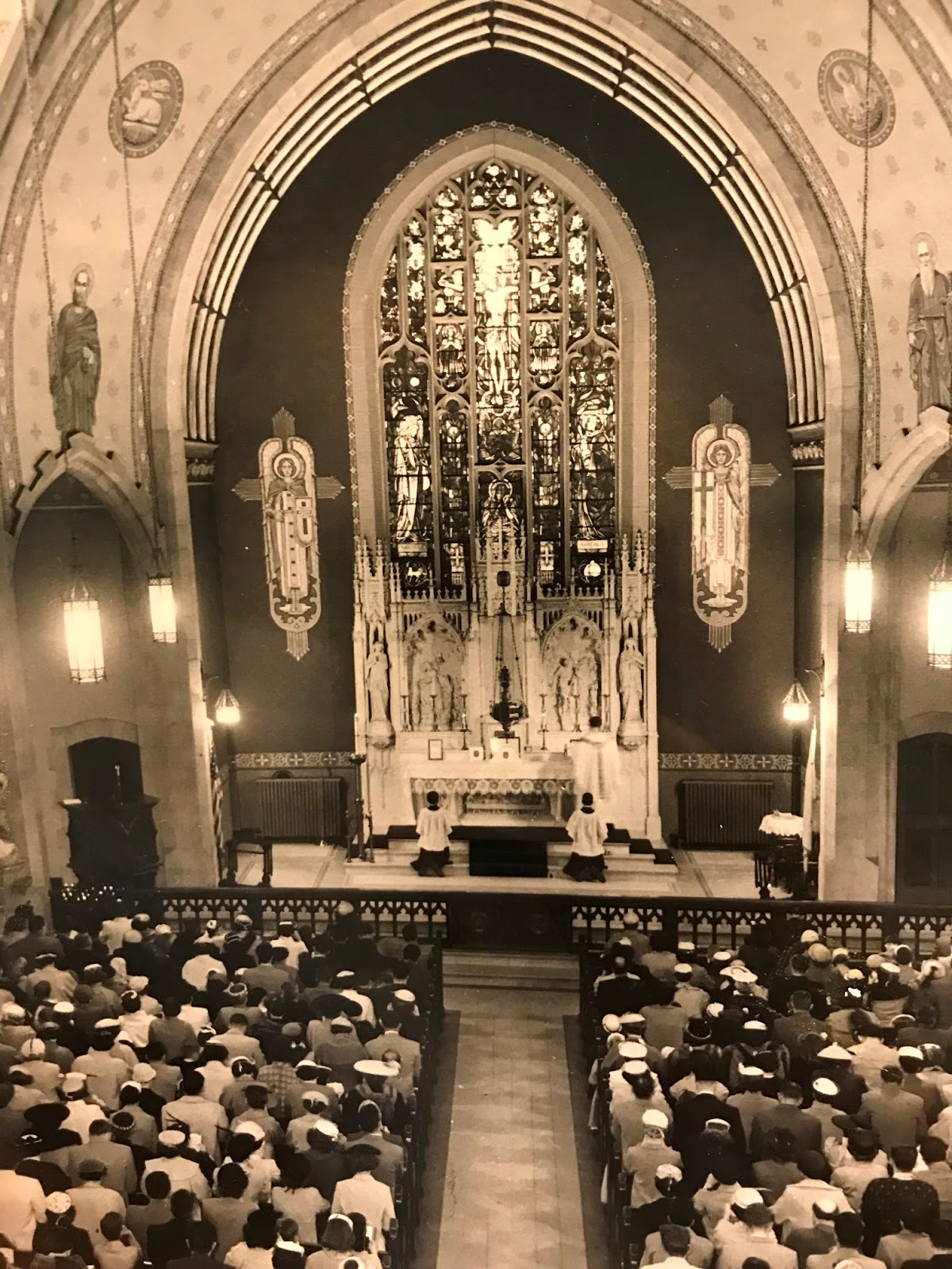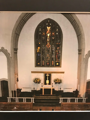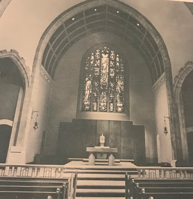Na tomto obrázku je renovácia kostola z roku 1967, ako ju zobrazuje brožúra z konsekrácie; hlavný oltár, ambóna; všetky dekoratívne maľby sú zatiaľ odstránené.