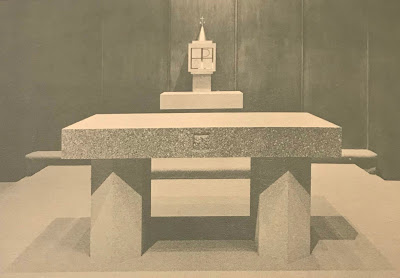 Oltár z roku 1967 bol granitový a posvätený revidovaným obradom z roku 1961, podľa pamätnej knihy z tohto dňa. Relikviár je umiestnený pred oltárom, sú v ňom uložené relikvie z pôvodného oltára, ktoré budú potom umiestnené v novom hlavnom oltári. V brožúre z roku 1967 sa píše: „Toto reštaurovanie sa deje presne podľa predpisov tradície Rímsko-katolíckej cirkvi, pričom pravá úcta oltáru sa vzdáva pozornosťou, venovanou skutočným a podstatným hodnotám, a nie časným dekoráciám.“