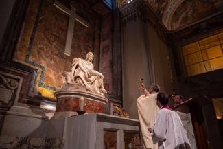 Omša, na ktorej sa zúčastnili zamestnanci EWTN, sa konala v kaplnke Pietà, v ktorej sa nachádza Michelangelova slávna socha Márie, ktorá drží Ježiša Krista po ukrižovaní. Umelec vytesal obraz z carrarského mramoru v rokoch 1498–1499, keď mal 24 rokov. Je to jediné umelecké dielo, ktoré kedy podpísal.