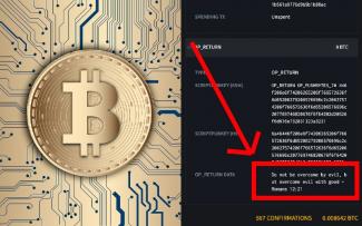 Jedna z transakcií zahrnutých v 666 666. blockchaine niesla toto posolstvo: "Nedaj sa premôcť zlému, ale dobrom premáhaj zlo." - Rim 12,21.