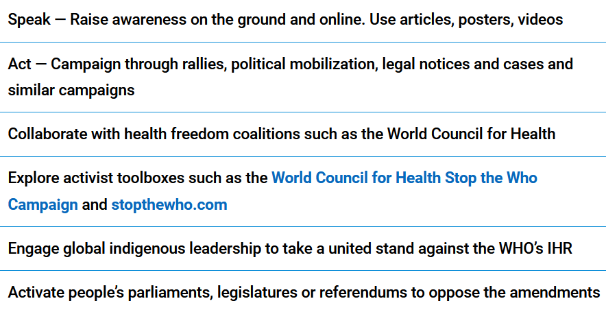 Takisto musíme chrániť náš národ pred dodatkami IHR. Na tento účel Svetová rada pre zdravie spustila celosvetovú kampaň #StopTheWHO. Tu’je, ako sa môžete zapojiť: