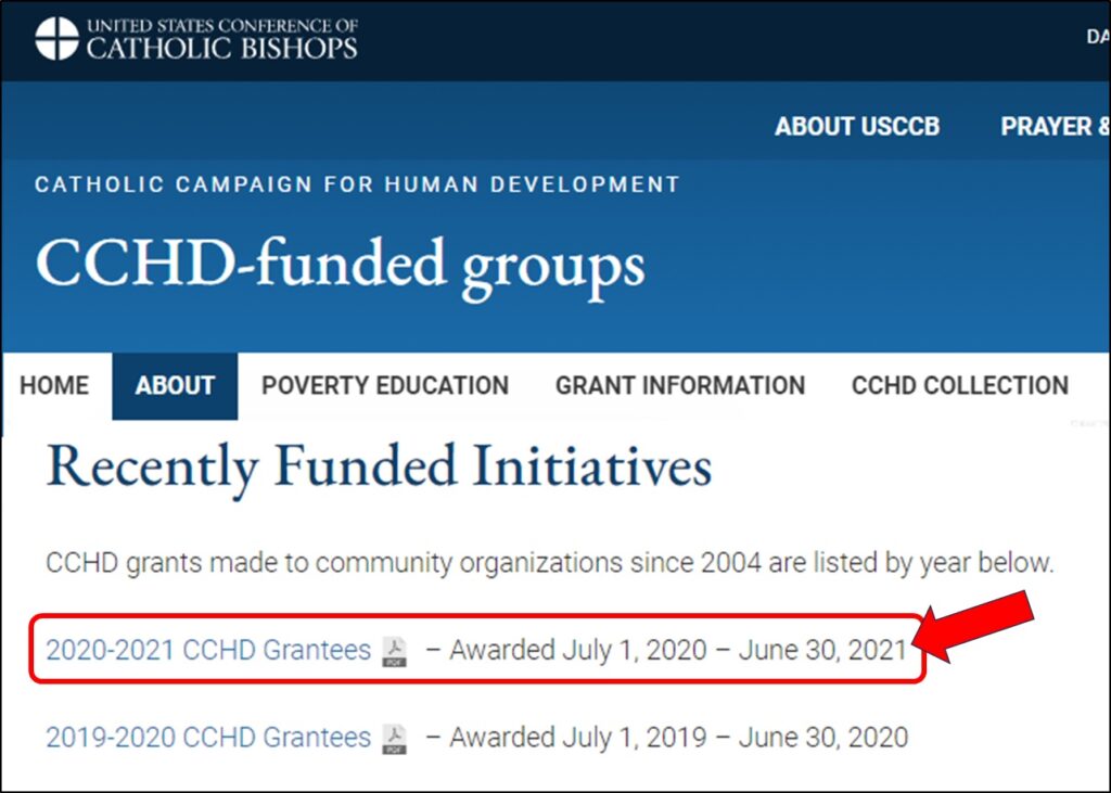 ‘Ako oficiálna agentúra katolíckych biskupov Spojených štátov amerických pre boj proti chudobe CCHD pôsobí na najvyššej úrovni vernosti cirkevnému učeniu, integrity a transparentnosti vo svojom poslaní poskytovať kritickú podporu ľuďom, ktorí zažívajú chudobu.’ (zvýraznenie pridané)