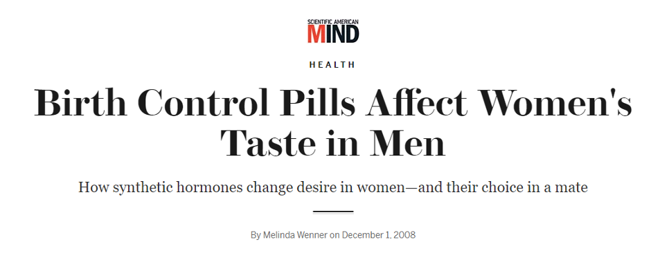 “…napríklad žena užívajúca tabletky môže s väčšou pravdepodobnosťou začať chodiť s mužom podobným MHC, ale…ak počas vzťahu vysadí tabletky, sprievodné hormonálne zmeny ju budú ešte silnejšie priťahovať k mužom podobnejším MHC.”