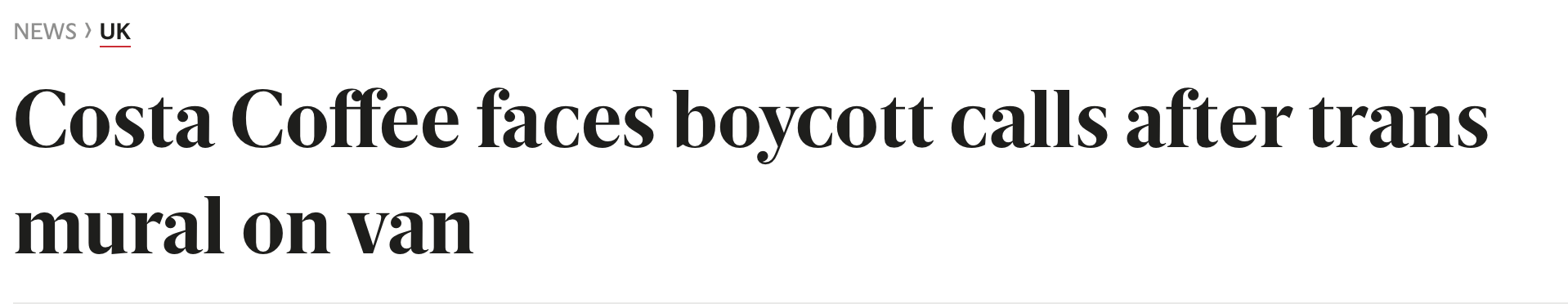 Costa Coffee, najväčší a najrýchlejšie rastúci reťazec kaviarní v Spojenom kráľovstve, čelí bojkotu po tom, čo sa na jednom z jej značkových vozidiel objavil šokujúci obrázok zmrzačenia.