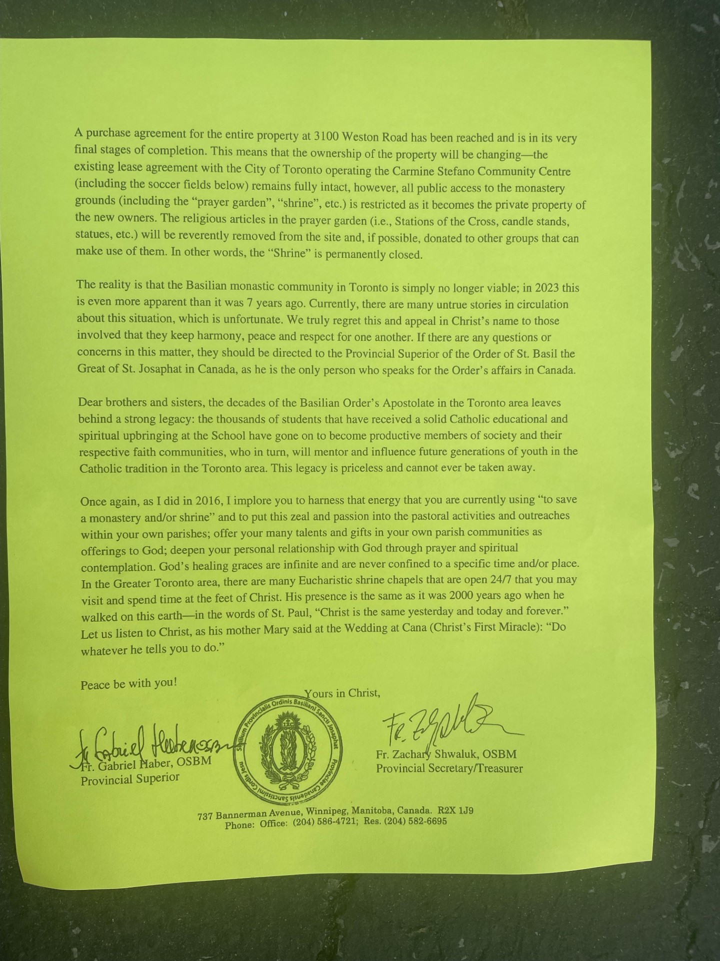 “Inými slovami, ‘Svätyňa’ je natrvalo zatvorená,” vyhlásil Haber. “Realita je taká, že baziliánska mníšska komunita v Toronte už jednoducho nie je životaschopná; v roku 2023 je to ešte zjavnejšie ako pred 7 rokmi.”
