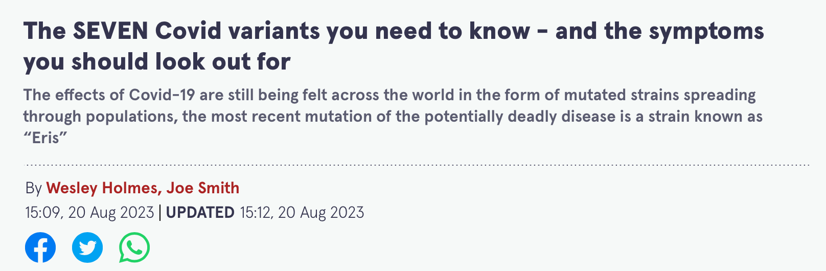 Dňa 9. augusta pri vyhlásení EG.5 za “záujmový variant”, ktorý je “v obehu v každej krajine,” Doktorka Maria Van Kerkhove, technická vedúca WHO’pre COVID-19, vyzvalakrajiny, aby pokračovali v sekvenovaní tohto variantu a pomohli tak pri pravidelnom “hodnotení rizík” vírusu, ale uviedla, že zatiaľ tento variant nie je závažnejší ako iné varianty Omicronu.