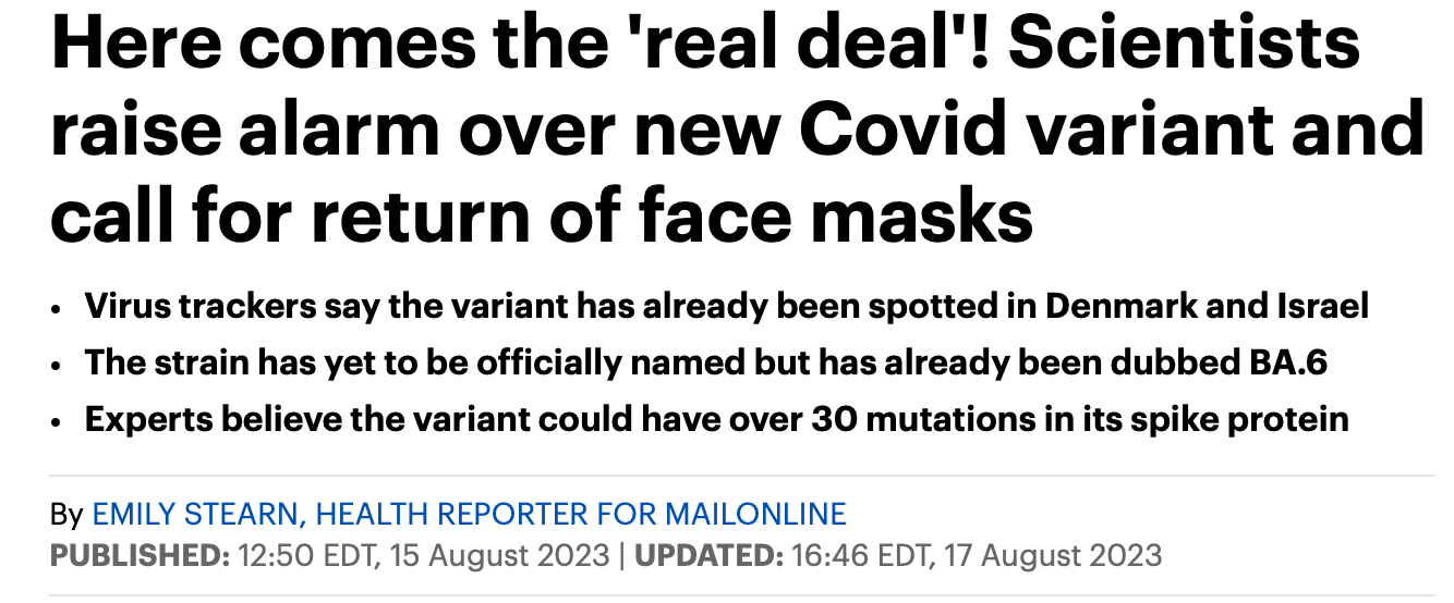 Bývalý komisár FDA Dr. Scott Gottlieb, ktorý je členom predstavenstva spoločnosti Pfizer, včera povedal “Face the Nation”, že virológovia sú “dosť znepokojení” ďalším novým variantom COVID, BA 2.86, ktorý bol nedávno identifikovaný v Michigane, ako aj vo Veľkej Británii, Dánsku a Izraeli.