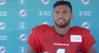 QB Miami Dolphins Tua Tagovailoa počas tlačovej konferencie chváli ‘The Sound of Freedom’.