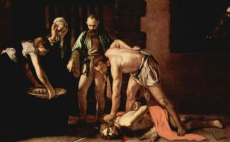 “A keď sa hneď ponáhľala ku kráľovi, požiadala a povedala: Chcem, aby si mi hneď dal na misu hlavu Jána Krstiteľa. Kráľ sa zarmútil, ale kvôli prísahe a kvôli tým, čo boli s ním pri stole, jej nechcel vyhovieť, ale poslal kata a rozkázal, aby jeho hlavu priniesli v mise. Ten ho sťal vo väzení, priniesol jeho hlavu v mise a dal ju dievčine a tá ju dala svojej matke. Čo počuli jeho učeníci, prišli, vzali jeho telo a uložili ho do hrobu.” (Evanjelium o sviatku, sv. Marek 6,17-29)