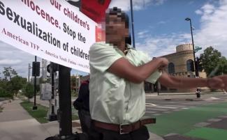 Incident sa odohral v čase, keď členovia študentskej skupiny TFP stáli na opačných stranách ulice v Madisone v štáte Wisconsin a držali v rukách nápisy s odkazmi ako “trúfajte si proti LGBT groomingu detí” a “nevinné dieťa je šťastné dieťa.”