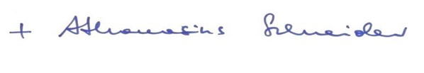Drahý biskup Strickland, ďakujem vám, že ste sa rozhodli “slúžiť Pánovi, a nie času,” ako kedysi napomínal biskupov svätý Atanáz (Ep. ad Dracontium). Modlím sa, aby v našich časoch viac biskupov ako vy pozdvihlo svoj hlas na obranu katolíckej viery a poskytlo tak duchovnú potravu a útechu mnohým katolíkom, ktorí sa často cítia opustení ako siroty.