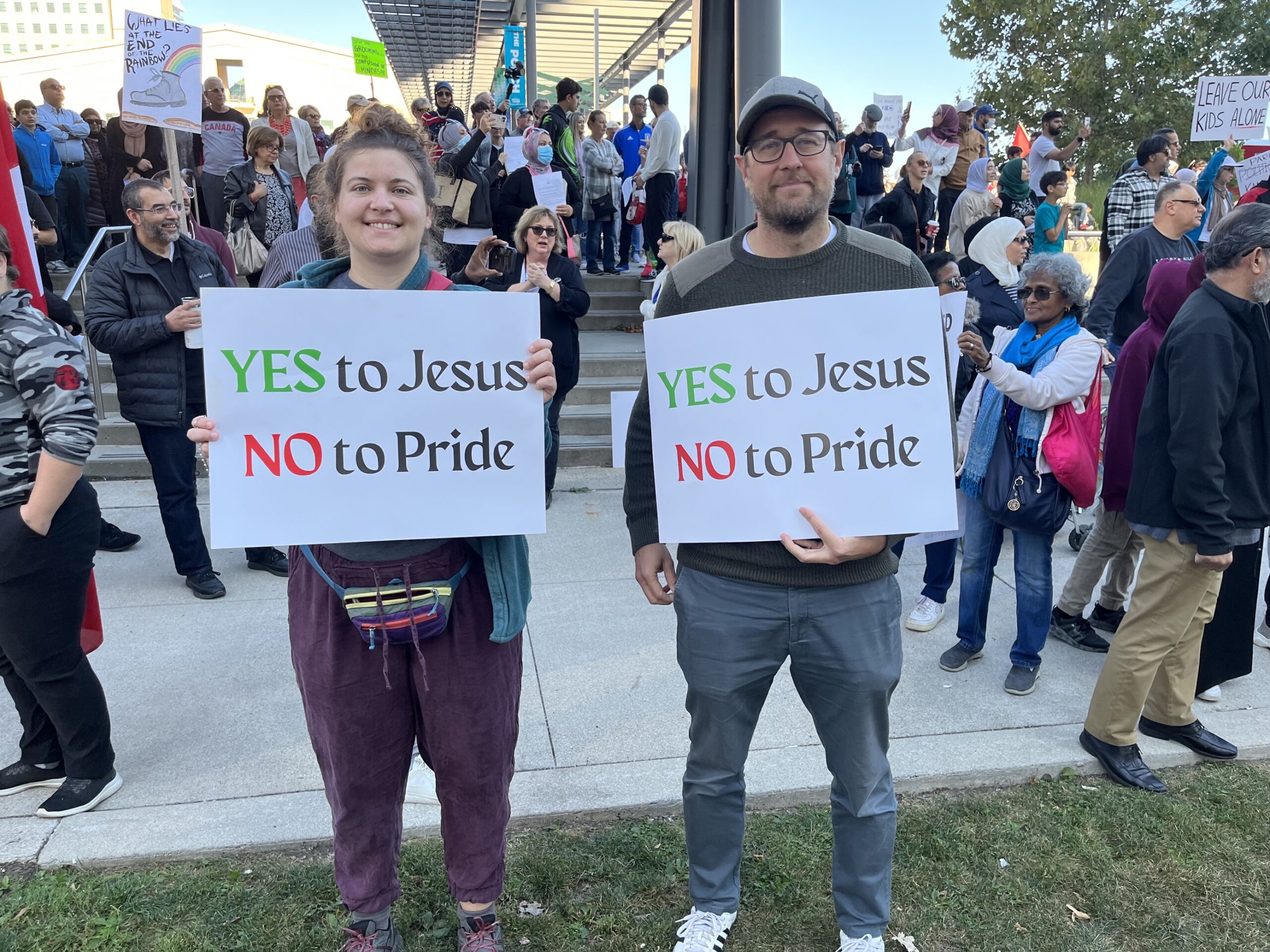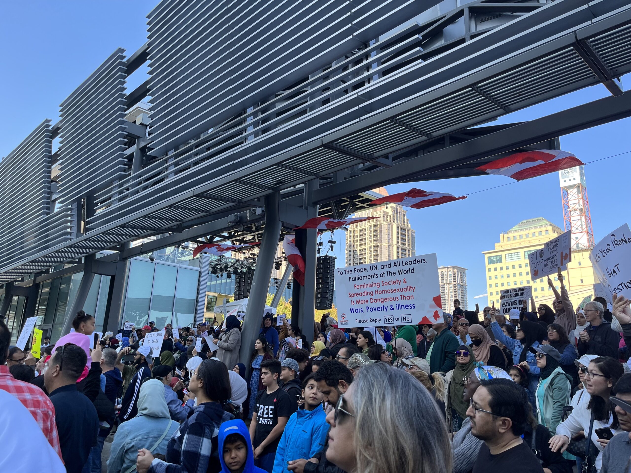 Riaditeľ politických operácií kampane Life Coalition’Jack Fonseca bol za nami v Kitcheneri, kde sa podľa jeho odhadu na radnici zhromaždilo 2 000 až 3 000 protestujúcich za rodičovské práva, vrátane detí s rodinami. Proti nim protestovalo asi 300 LGBT aktivistov, z ktorých mnohí boli maskovaní, aby skryli svoju identitu. Jack na Twitteri uverejnil informatívny, 11-dielny záznam protestu s niekoľkými zasvätenými komentármi, fotografiami a videami. (Ak ho chcete nazvať X, smelo do toho.)