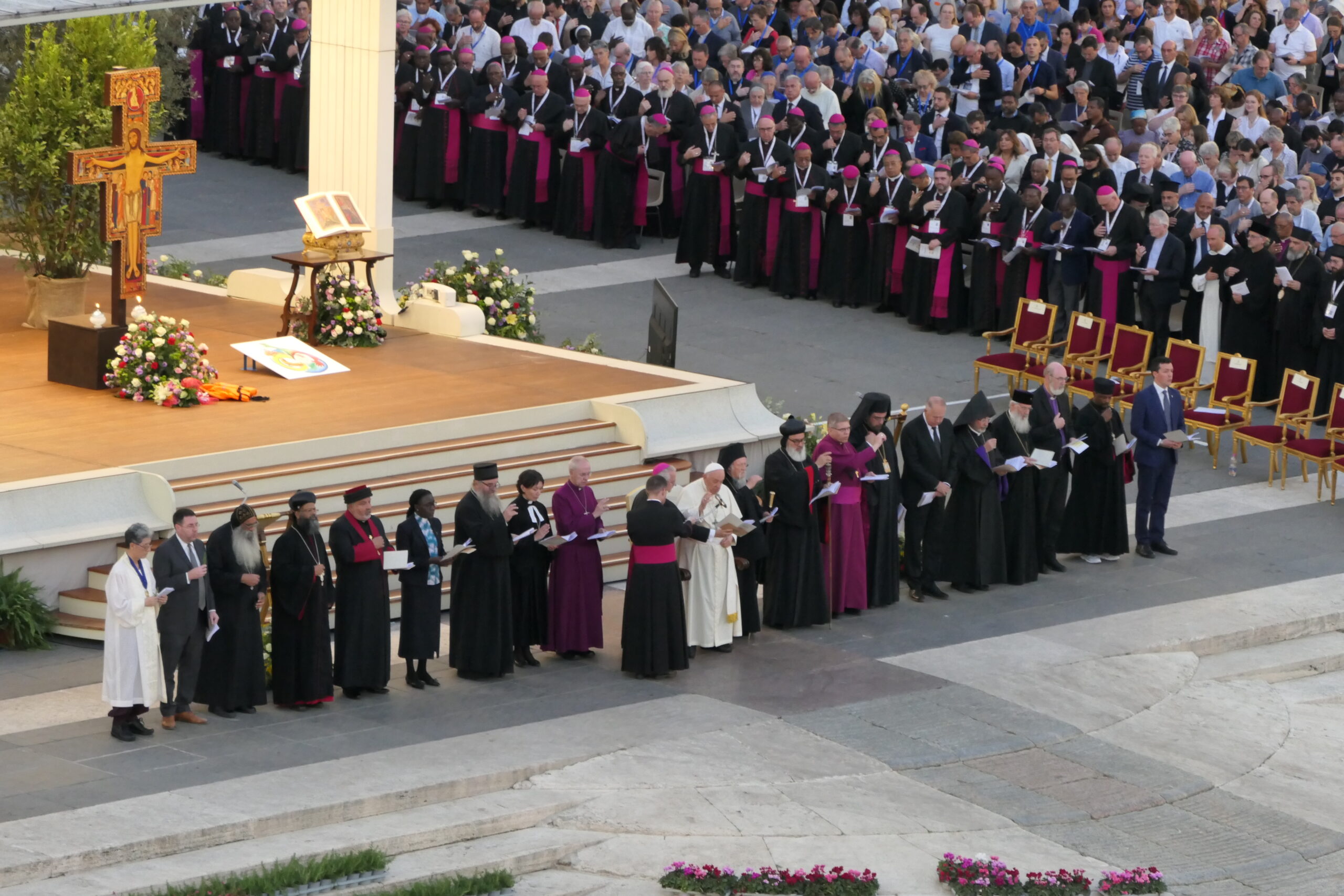 K pápežovi Františkovi sa na vonkajšom oltári pripojili vedúci z pravoslávnej, východnej pravoslávnej, protestantskej, metodistickej, baptistickej a evanjelickej komunity.