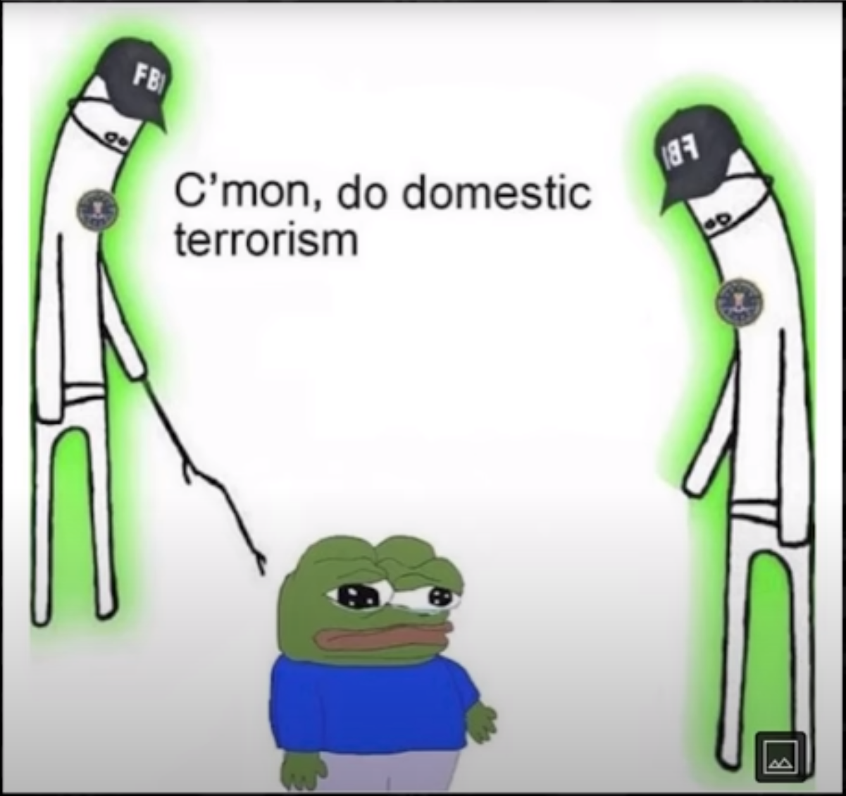 “Je to’doslova memento agenta FBI v klobúku, ktorý štuchá do žabiaka Pepeho a hovorí: ‘urob terorizmus.’To’robíme.”