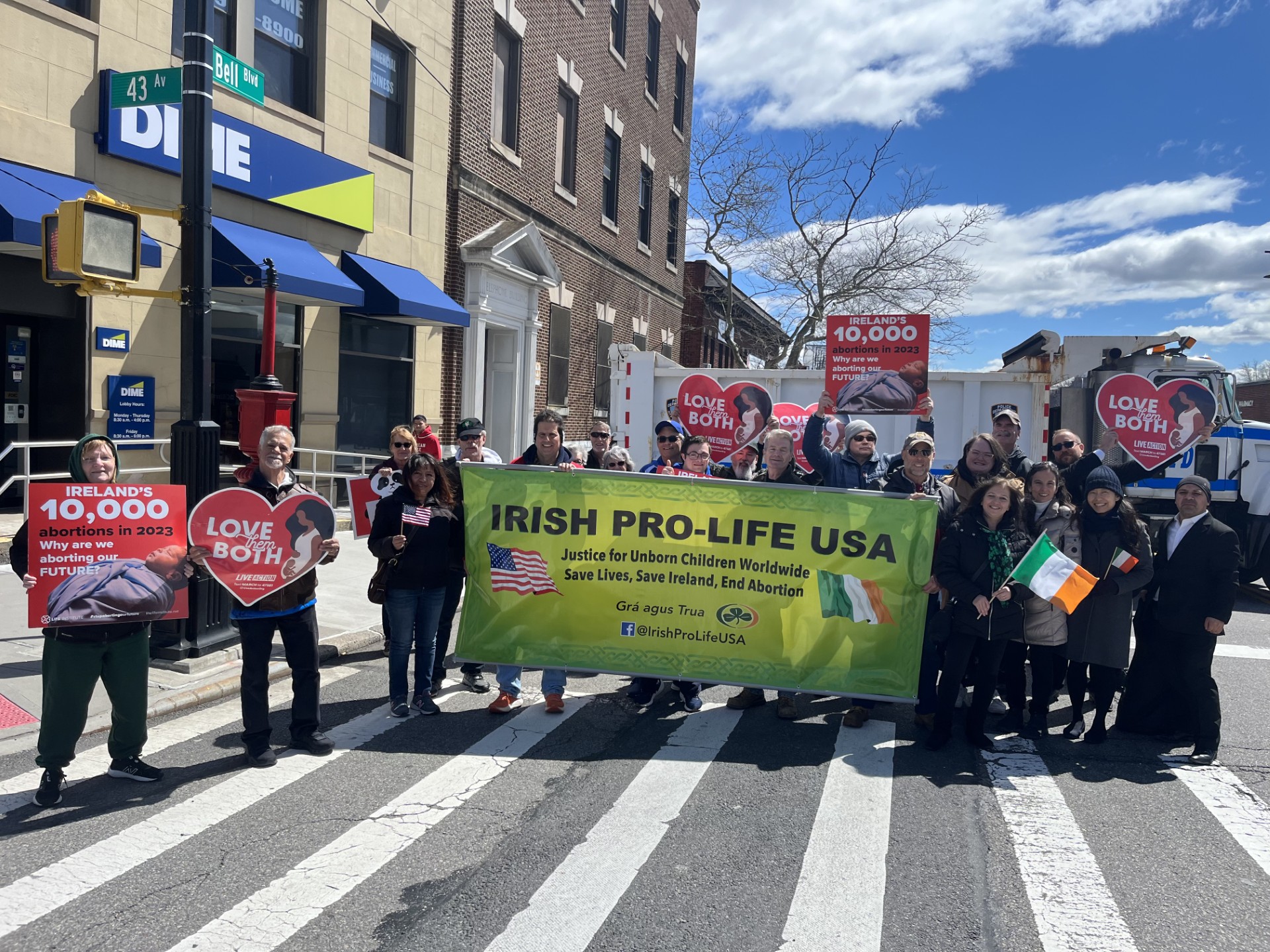 Privítanie zástancov života v Bayside v Queense nezostalo bez povšimnutia. Viac ako dve desiatky podporovateľov pochodovali za transparentom Irish Pro-Life USA v Bayside.