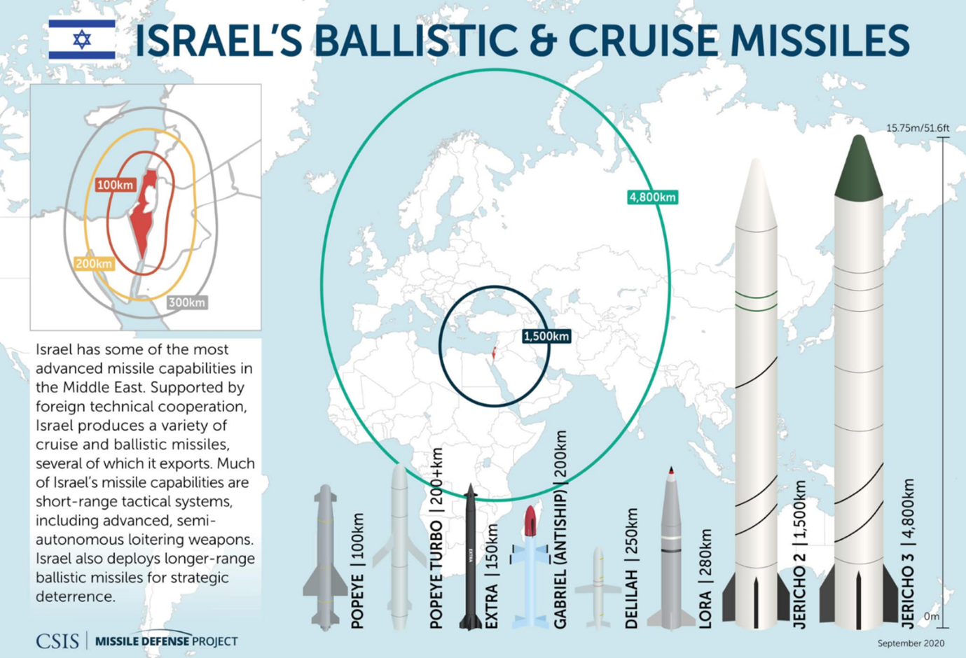 Ako ukazuje nasledujúca ilustrácia, Izrael je schopný zasiahnuť hlboko v Rusku a v celej Európe, ako aj na Blízkom východe a v Afrike.