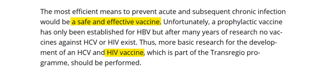 Chronické vírusy, pre ktoré sa hľadala vakcína, boli hepatitída-C a HIV. Programové vyhlásenie je k dispozícii v angličtine zde. Ústredný význam vývoja “bezpečnej a účinnej” vakcíny proti HIV je jasný. Áno, dnes už neslávne známa formulka “bezpečná a účinná” je v programovom vyhlásení (ako je možné vidieť nižšie).