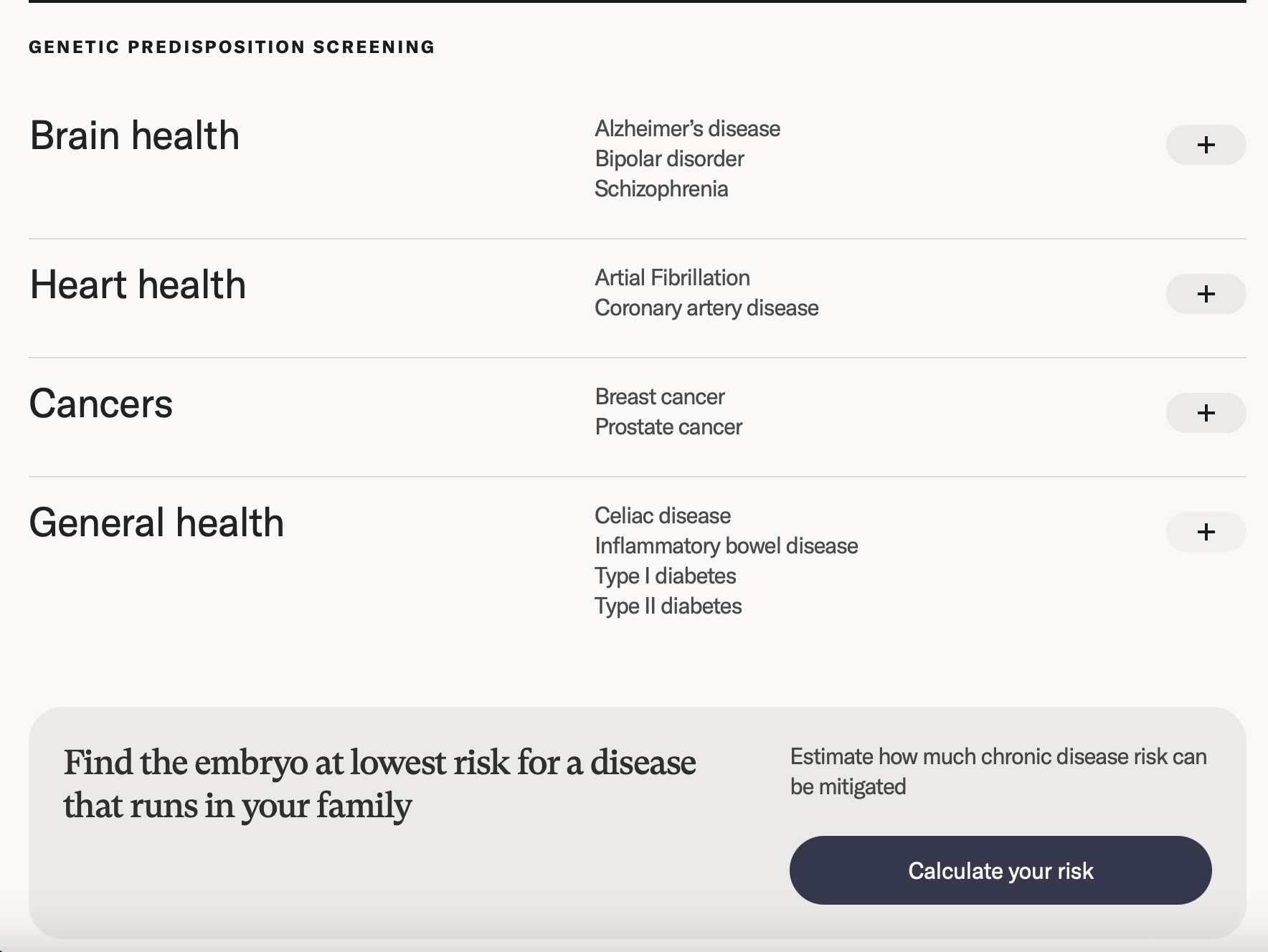Jedna časť webovej stránky spoločnosti Orchid Health’vyzýva rodičov, aby “našli embryo s najnižším rizikom ochorenia, ktoré sa vyskytuje vo vašej rodine,” čím naznačujú, že všetky ostatné sú nehodné lásky, starostlivosti a povolenia žiť.