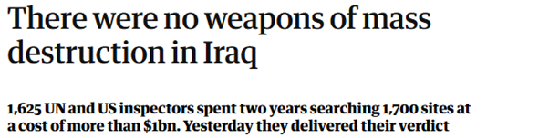 Neexistovali žiadne zbrane hromadného ničenia, ktoré by ospravedlnili vojnu v Iraku