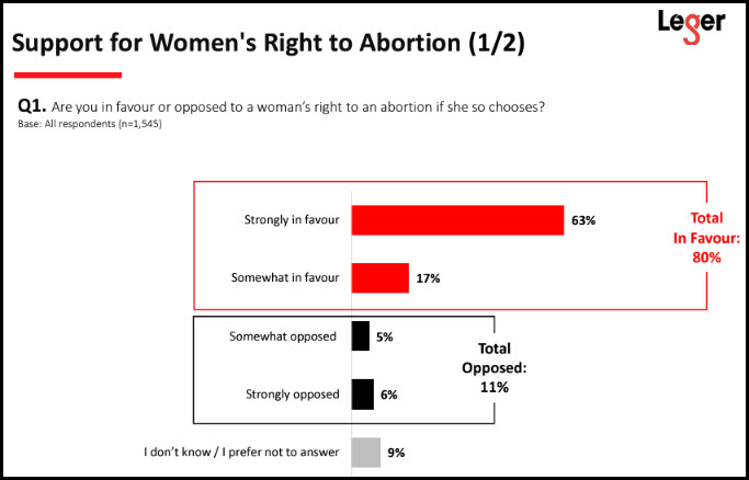 Akcia 2024 Leger ukázala, že 11 percent Kanaďanov je do určitej miery proti potratom. To predstavuje 4,3 milióna ľudí.