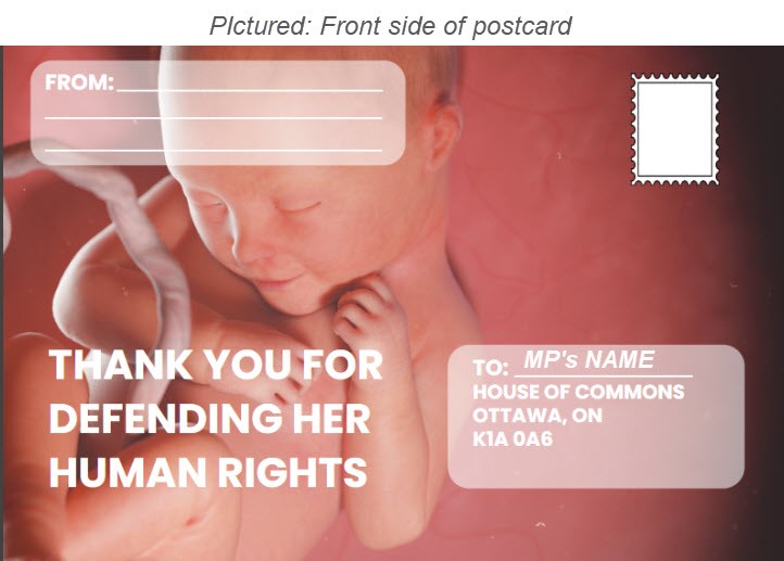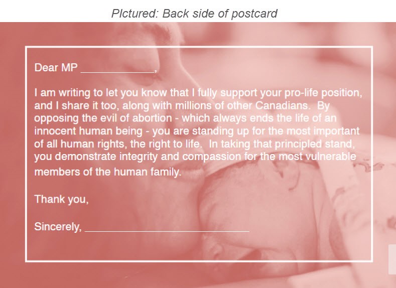 Na pomoc sme navrhli špeciálnu pohľadnicu, ktorá vám pomôže vyjadriť poďakovanie a uznanie poslancom, ktorí sa stali terčom útoku Justina Trudeaua a jeho potratomilovnej brigády.