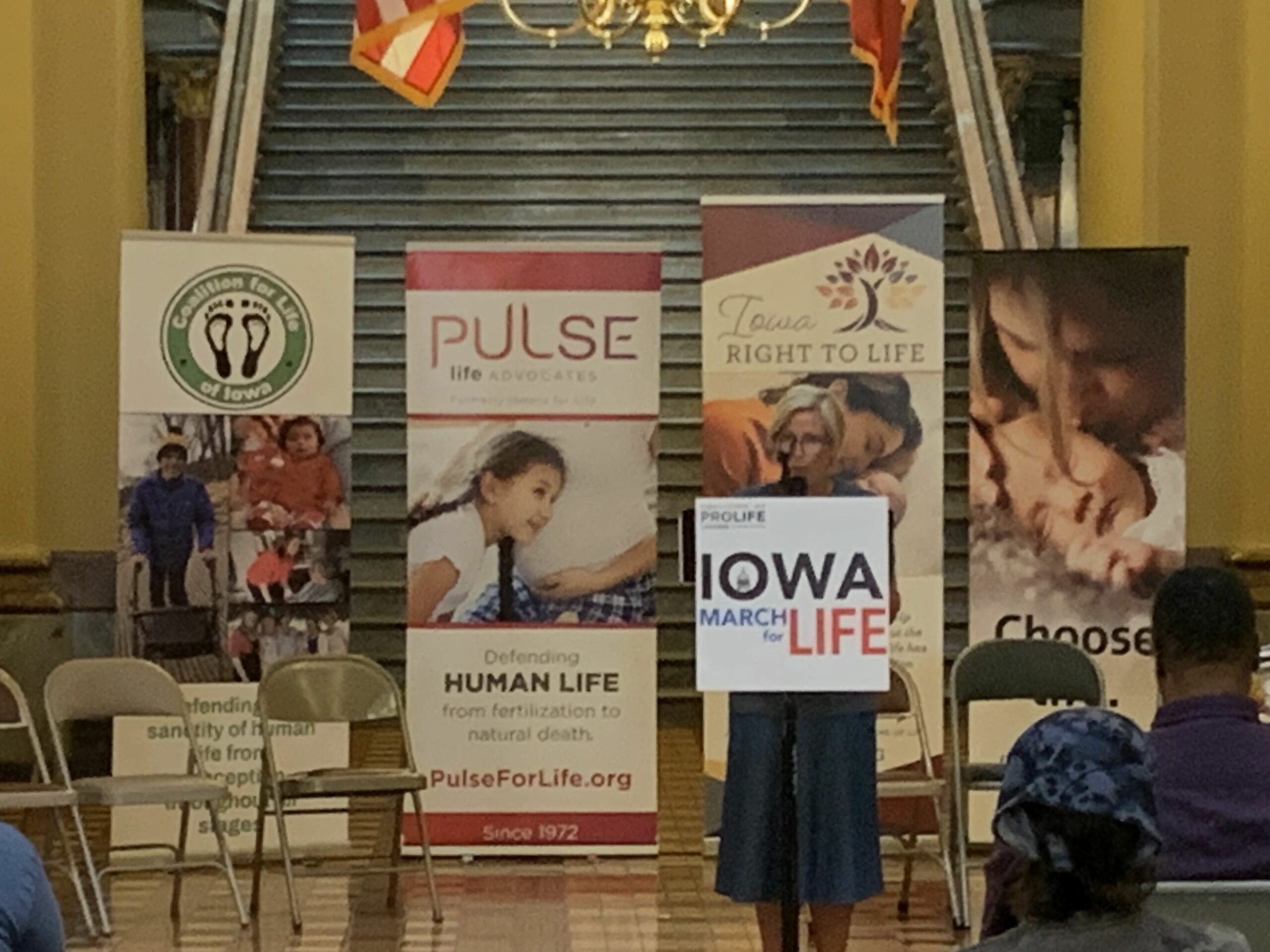 Pochod v Iowe sa začal pro-life expozíciami v Rotunde Kapitolu, po ktorých nasledovali rečníci vrátane biskupa Des Moines Williama Joensena, reverenda J.E. Dr. B. Keith Haney, výkonná riaditeľka Pulse Life Advocates Maggie DeWitte, generálna prokurátorka Iowy Brenna Bird, pro-life advokátka Hope Miller, Tamra Call z Obria Pregnancy Resource Center a pastor Dave Olson.