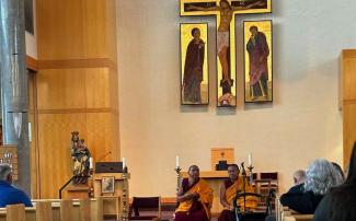 - Tibetskí budhistickí mnísi viedli meditáciu v katolíckom kostole v Oregone.