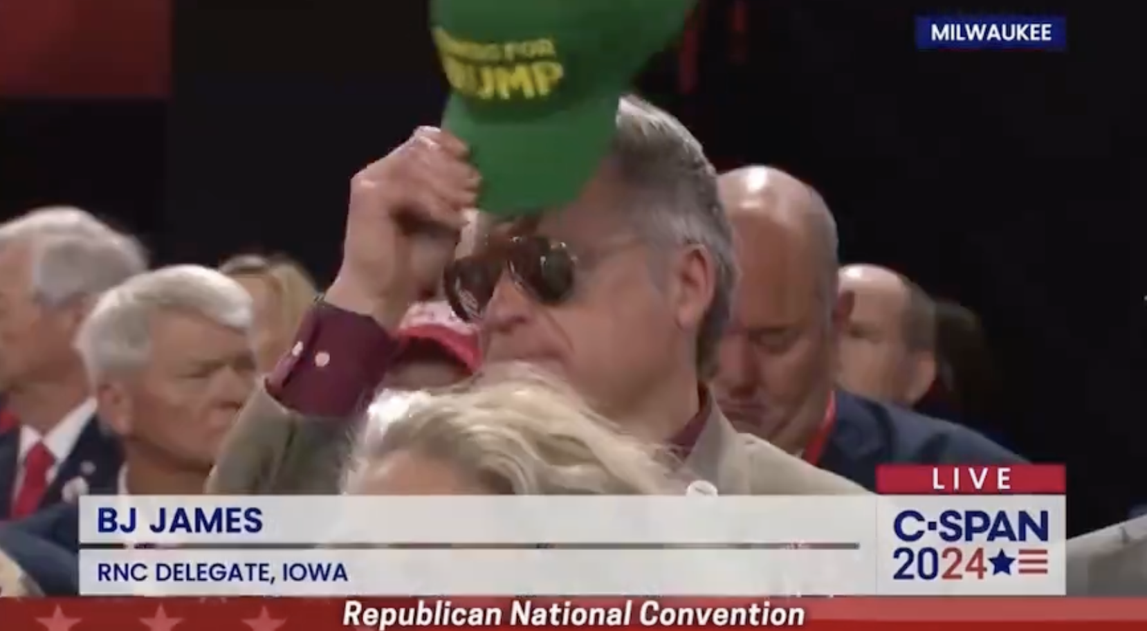 Video zverejnené na X ukazuje B.J. Jamesa, delegáta RNC z Iowy, ako sa počas štvrtého dňa zjazdu modlí modlitbu k svätému Michalovi a publikum ho povzbudzuje.