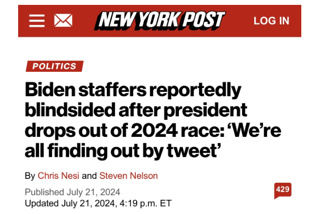 Členovia jeho kampane sa o Bidenovom’“rozhodnutí” odstúpiť z čítania X – dozvedeli niekoľko hodín po tom, čo manažér Bidenovej’kampane dementoval tvrdenia, že Biden odstupuje z volieb.