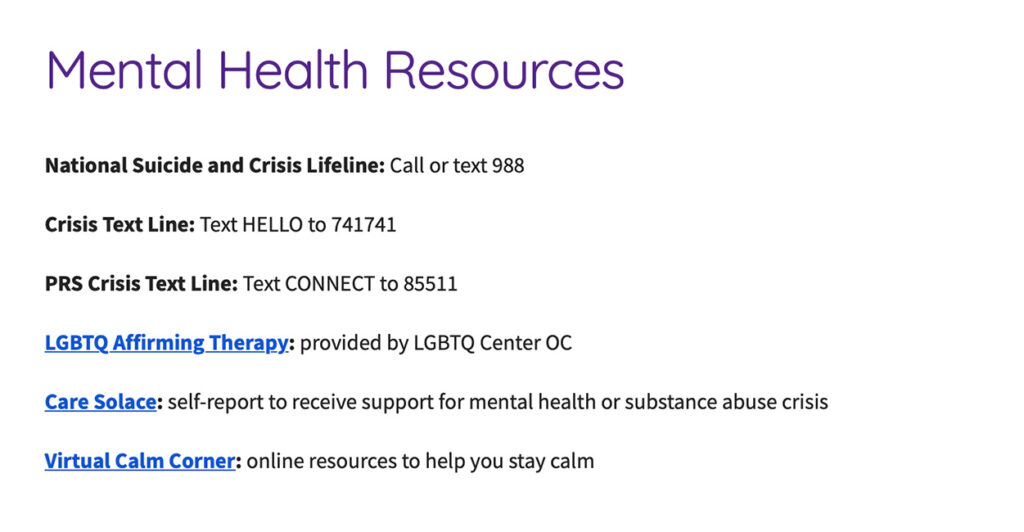 Teraz odstránené zdroje obsahovali tento odkaz na “LGBTQ Affirming Therapy”, ktorý poskytuje LGBTQ Center OC.