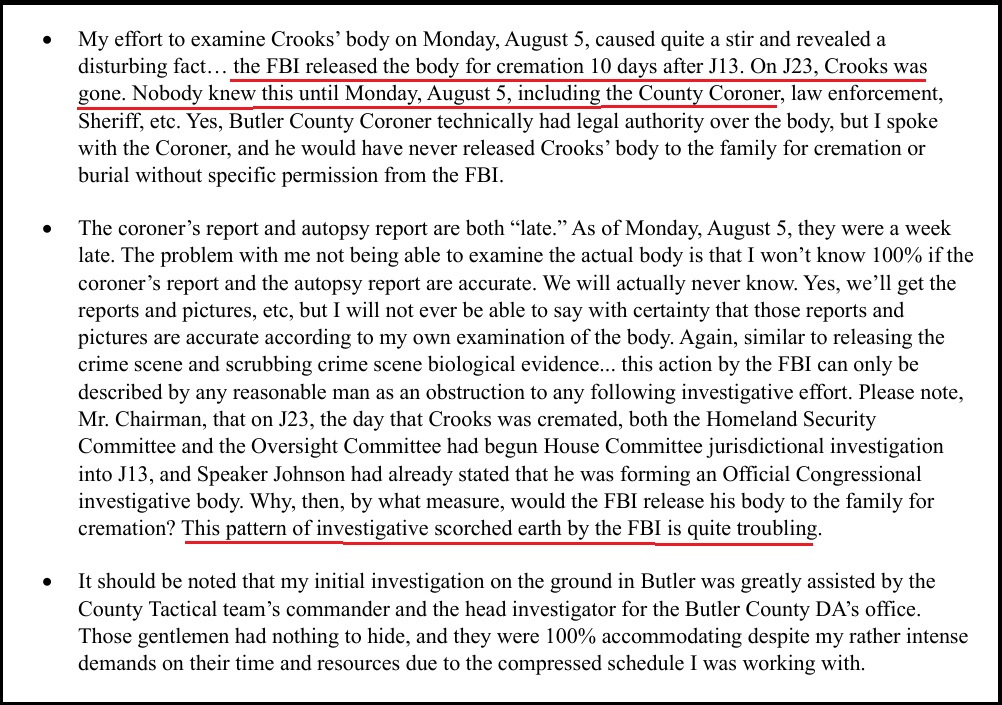 Zástupca Clay Higgins je členom kongresovej vyšetrovacej skupiny, ktorá sa zaoberá pokusom o atentát na prezidenta Trumpa, ktorý spáchal Thomas Matthew Crooks. Reprezentant Higgins robil nezávislý výskum aj pred svojím vymenovaním do kongresovej komisie a dnes zverejnil predbežné závery svojej správy.