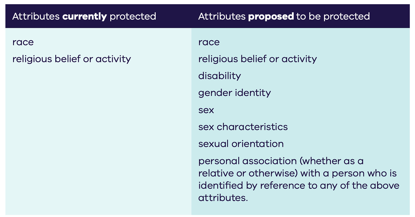 Nové zákony by znížili zákonný prah pre stíhanie ľudí za osočovanie a pridali by rodovú identitu, pohlavie, pohlavné znaky, sexuálnu orientáciu a zdravotné postihnutie na zoznam chránených atribútov popri rase a náboženstve, ktoré sú už chránené.