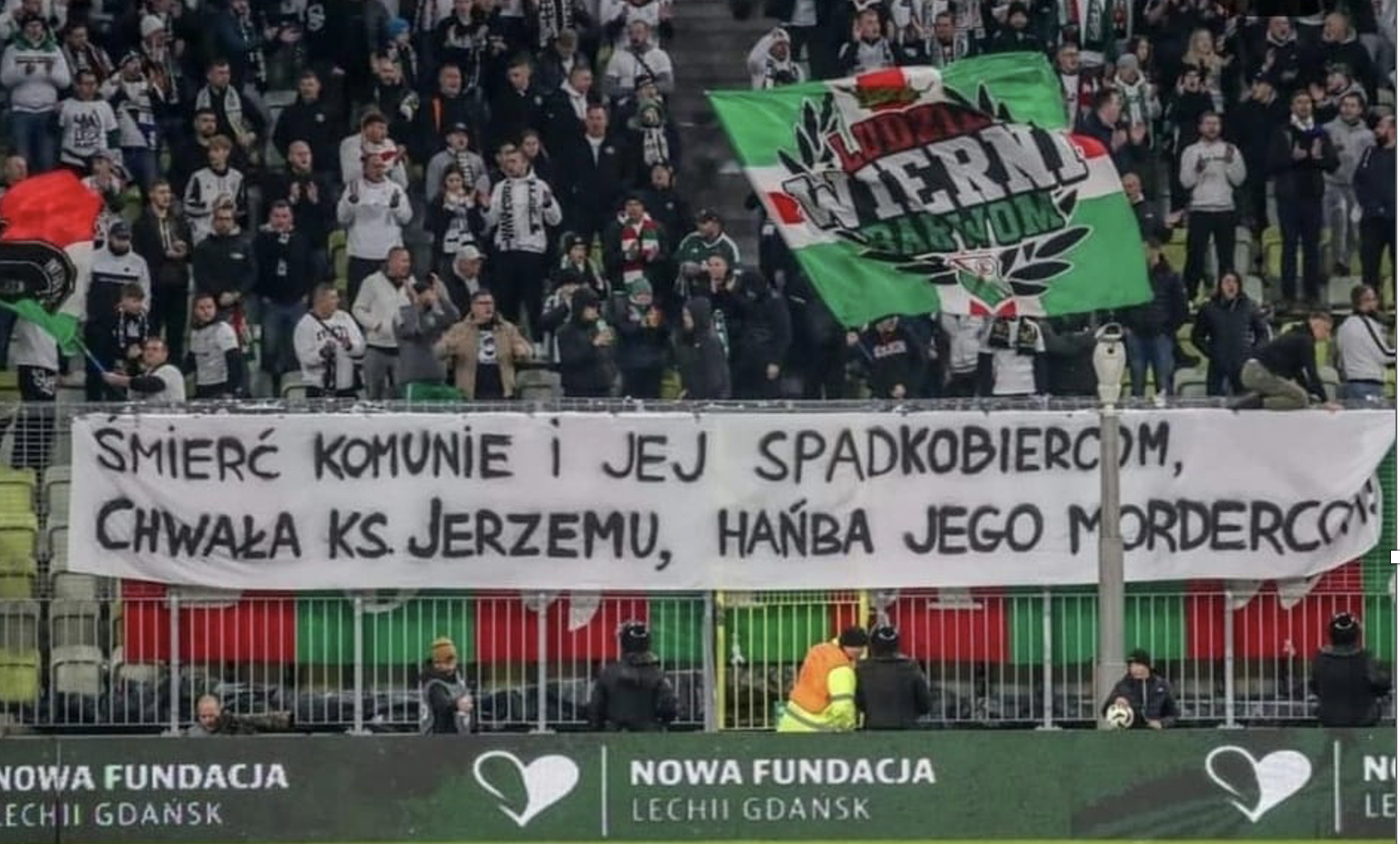 “Fanúšikovia (kibice) v Poľsku, bez ohľadu na to, akému klubu fandia, sú vnímaní ako antikomunisti a antiliberáli zároveň. Sú to jednoducho vlastenci, pre ktorých sú staré poľské hodnoty ako Boh, česť a vlasť stále veľmi dôležité,” napísal. “Z času na čas to demonštrujú veľkými transparentmi.”
