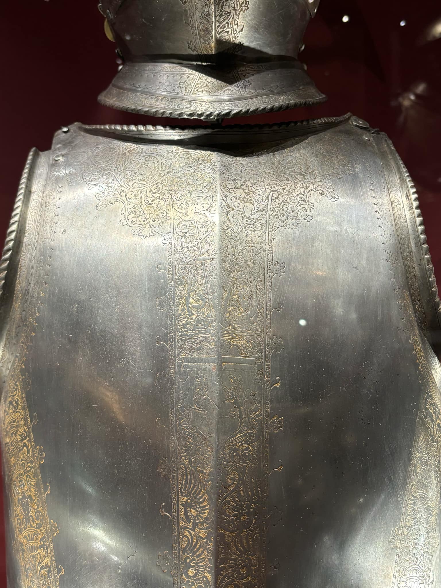 Keď išlo o bitky, náboženské obrazy boli čo najviac prítomné a vnútorná viera rytierov sa navonok prejavovala v zbraniach, ktoré používali, a v zbroji, ktorú nosili. Rytieri si často objednávali personalizované brnenia so zložitou prácou, ktorá na nich zobrazovala náboženské symboly a obrazy. Milánska rodina Negroli, medzi ktorej klientov patrili významné osobnosti ako Karol V. a rodina Della Rovere, bola jedným z hlavných dodávateľov brnenia a zbraní pre rytierov a vytvorila úžasné brnenia s náboženskými vyobrazeniami, z ktorých mnohé existujú dodnes.