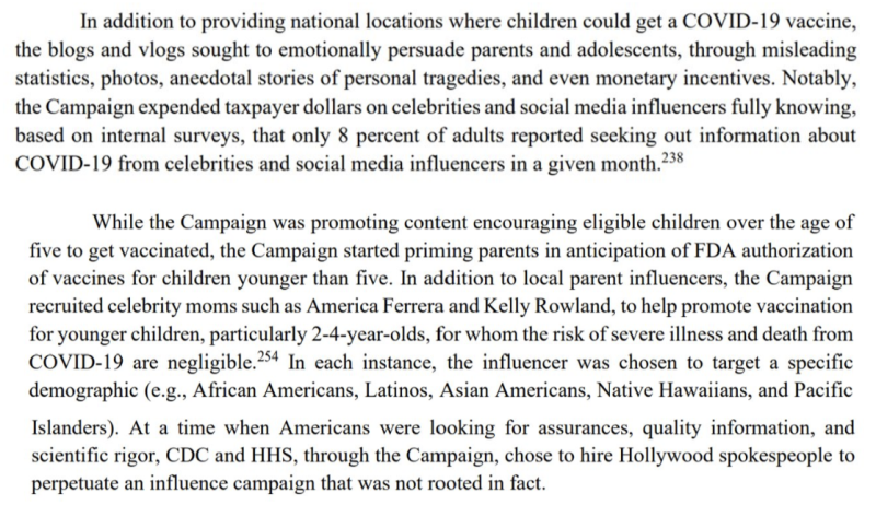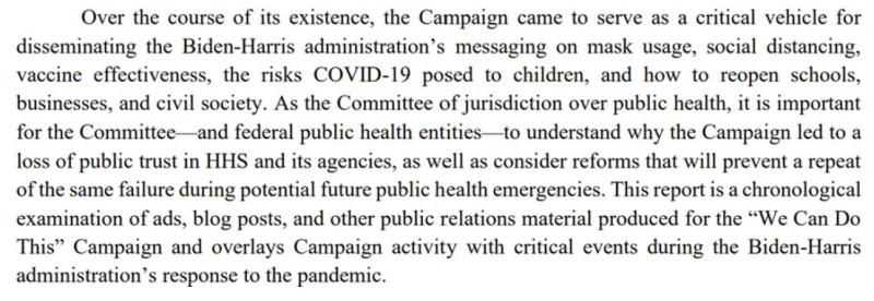 Zpráva snemovne o propagande HHS COVID je zničujúca. Bidenova administratíva minula takmer 1 miliardu dolárov na to, aby Američanom podsunula nepravdivé informácie o vakcínach, posilňovačoch a maskách COVID. Ak by túto kampaň viedla farmaceutická spoločnosť, bola by pokutovaná.