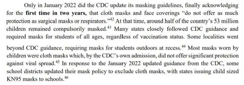 V správe sa podrobne uvádza, ako sa CDC’v priebehu rokov obracala v maskách. Obzvlášť rozčuľujúce je pripomenúť podivné, protivedecké a protiľudské zameranie CDC’na maskovanie batoliat látkovými maskami do roku 2022.