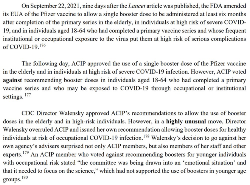 Verejnoprávna firma (FMG) čerpala väčšinu svojich chybných vedeckých poznatkov z usmernení CDC’“, ktoré ignorovali zistenia FDA’o obmedzeniach vakcíny’ako aj vedecké zistenia z iných krajín, ktoré boli v rozpore so skupinovým myslením CDC.