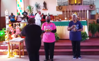 Eucharistickí služobníci, ako aj niektorí laici, ktorí sa zúčastnili na omši a tiež mali oblečené prokamalské tričká a čiapky, zrejme reagovali na výzvu svojich farárov’ vydanú v predchádzajúcom týždni: “Budúcu nedeľu vás’žiadame, aby ste si obliekli volebné oblečenie.”