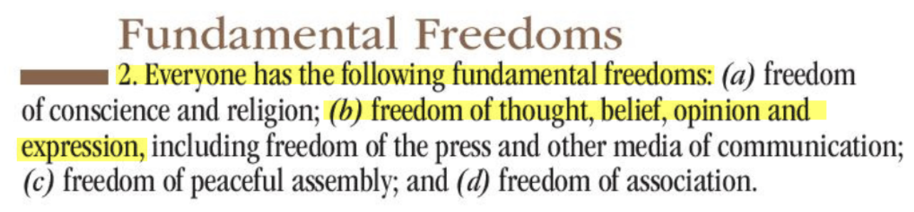 Gomery “prečítal jazyk” § 2 písm. b) tvrdením, že z práva Charty na slobodu prejavu vyplýva, že ho nemožno použiť na rázny odpor voči transgenderovej ideológii.